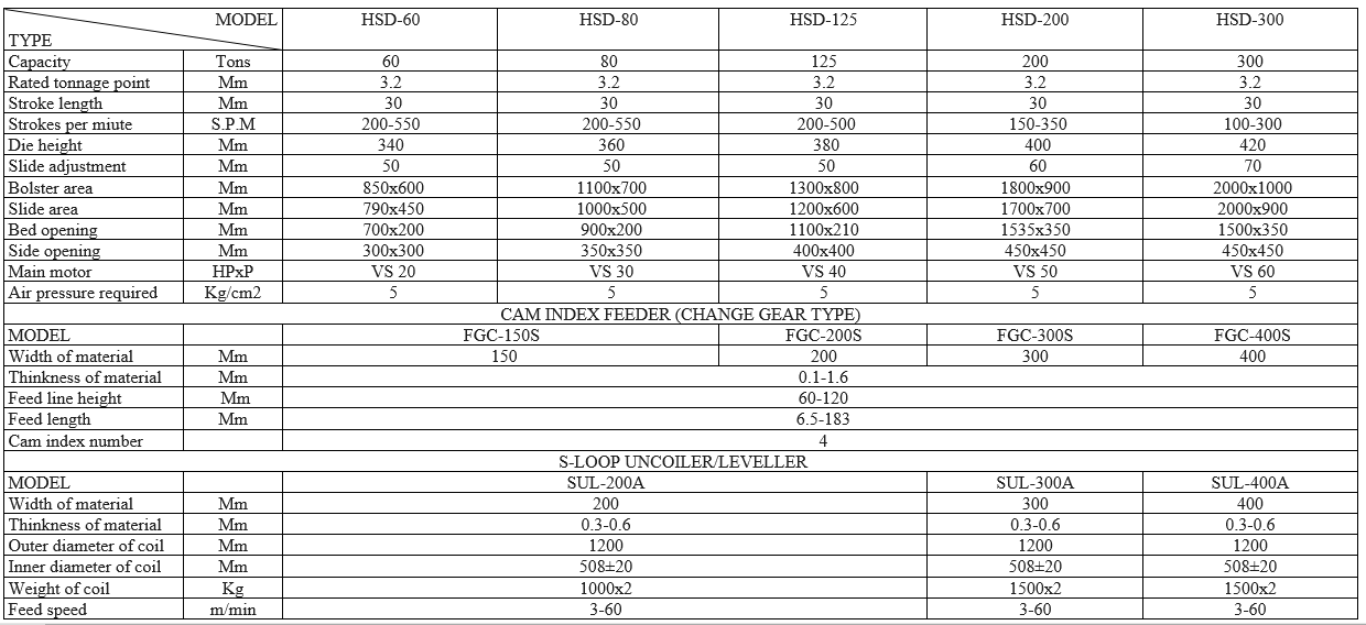 STRAIGHT SIDE HIGH SPEED DOUBLE CRANK PRESSES。 (60-300 Tons Capacity)