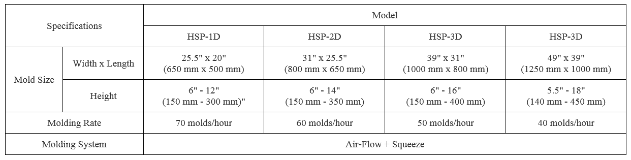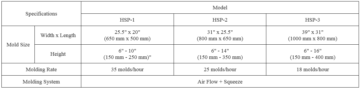 The HSP Series Tight Flask Molding line are self-contained units with integrated hydraulic system and electronic control used for small to medium casting production.          Â