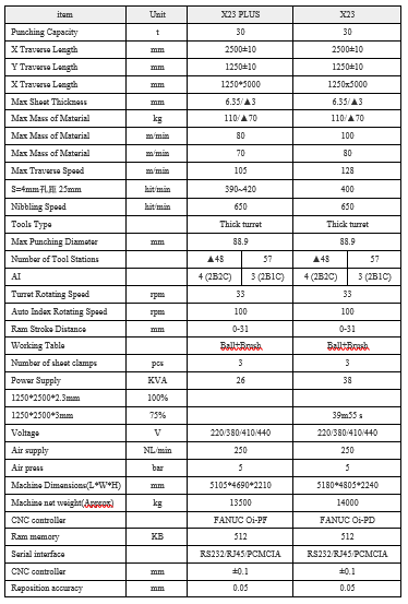 X23 is adapted with Germany H+L advanced Servo Hydraulic system, HPPC-30T. 30 tonnages provide more punching capacity, also the three pressure accumulators are capable of transform high/low resistance under high-speed punching capacity. Up to 450 hpm punching speed, controllable ram traverse for top/bottom dead center, favorable for processing with roller ball cutting, marking and some other special forming processing.