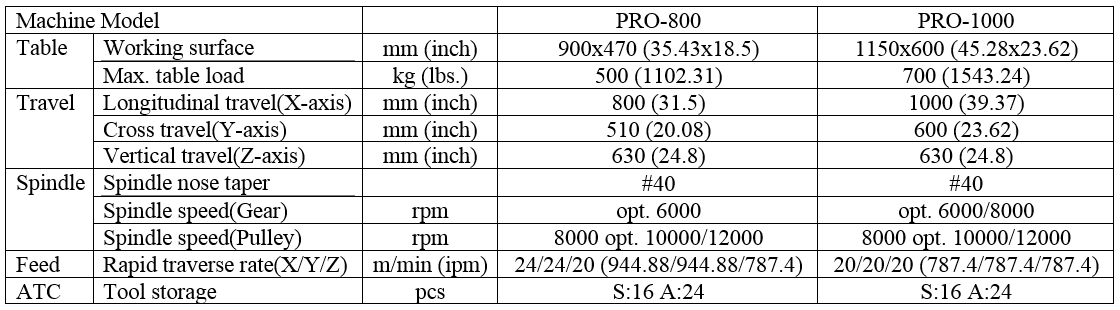 Z-axis servo motor upgraded and counter-balance block (opt.) +Special package to improve the precision of Z-axis movement in high speed machining. Z-axis servo motor connected directly to ballscrew ​+No more Z-axis timing belt, the servo is connected to the ballscrew. There is no more need to maintain or replace the timing belt. Unique column design for greater rigidity and stability +Specially designed upside down column construction with column base measures 1000mm width 54% increase stability.The oversized column and base provide 1000 x 600 x 630 mm work envelop. (Model PRO-1000) |