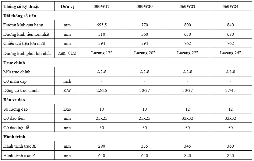 Bàn xe dao: phù hợp với bàn xe dao thủy lực mạnh mẽ để gia công công suất lớn. Cấu trúc bộ phận được thiết kế rất vững chắc để phù hợp với các yêu cầu nghiệm ngặt cho hiệu năng gia công cao. Có tùy chọn bàn xe dao 12 vị trí.